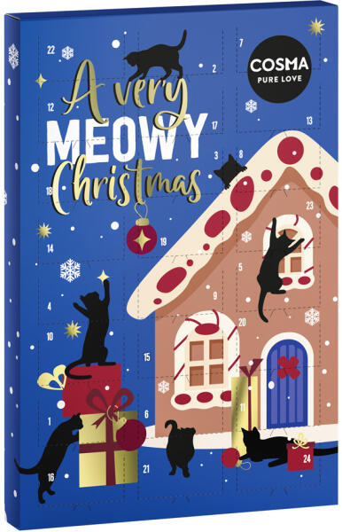 A zooplus. hu kínálatából: Kényeztesse macskáját a közkedvelt Cosma adventi kalendáriummal - minden ajtó élvezettel teli finomságot rejt!Az adventi naptár 24 x Cosma Snackies vagy Cosma Snackies Minis jutalomfalatot tartalmaz 5-féle ínycsiklandozó ízzel:Csirke: finom csirkemelldarabkák Lazac: válogatott falatok lazacfilébőlKacsa: ízletes kacsamelldarabkák Marha: válogatott marhafalatokTonhal: zamatos darabkák tonhalfilébőlÍgy egy csomagnyi finom hús- és haldarabkákkal lepheti meg cicáját a különleges ízélményekért! Összesen legfeljebb 3 finomságot rejt egy-egy ajtó és a kalendárium teljes tartalma 10,5 g. Tegye boldoggá cicáját és leje meg nap, mint nap egy különleges finomsággal! Bizonyosodjon meg Ön is a Cosma adventi kalendárium kiválóságáról és szerezzen örömet macskájának minden nap az adventi időszakban egy igazán különleges csemegével:24 x finomság: 100%-ban tiszta hús vagy halCosma Snackies vagy Cosma Snackies Minis 5 finom fajtájávalLegfeljebb 3 finomság egy ajtó mögöttKíméletesen fagyasztva szárítottTermészetes macskasnackGabonamentesKülönsen magas elfogadási arány még a válogatós cicák körében is Tartósítószerek, színezékek vagy csalogatóanyagok hozzáadása nélkül Cosma Snackies: természetes snack 100%-ban húsból vagy halból, ami kivételesen magas elfogadási arányt eredményez még a válogatós kedvencek körében is!A naptárban található finomságok megvásárolhatók a zooplus-on is. Adventi naptár mérete: 33 cm x 23 cm. Csak rövid ideig kapható!