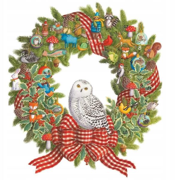 Képi adventi naptár Hóbagoly koszorú 33x38 cm (4541)ALLEGRO