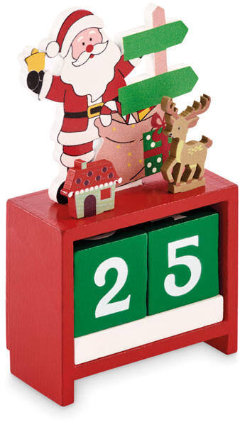 Fából készült, karácsonyi visszaszámláló asztali naptár.