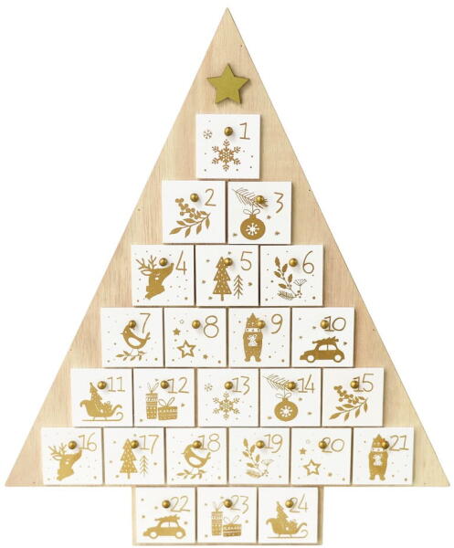 Ez az adventi naptár nagyszerű alternatívája a tipikus csokoládéval töltött naptárnak. Összesen 24 fiókot (kb. 4 x 3 x 3,5 cm-es belső mérettel) lehet megtölteni apró játékokkal, pénzzel vagy egyéb ajándékokkal.